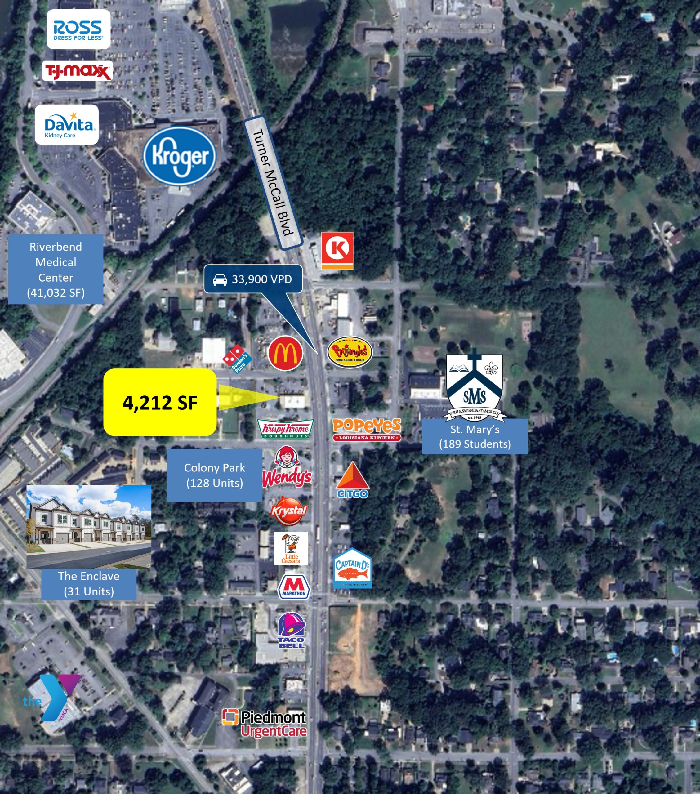 4,212 SF (0.33 AC) Freestanding Building located off Turner McCall Blvd in Rome, GA. The property sits down the street from the Riverbend Shopping Center (3.7 million annual visits) and East Bend Shopping Center (2.1 million annual visits) with retailers such as: Kroger, Home Depot, T.J. Maxx, ULTA, Ross, and Michaels. The property has two full access curb cuts.