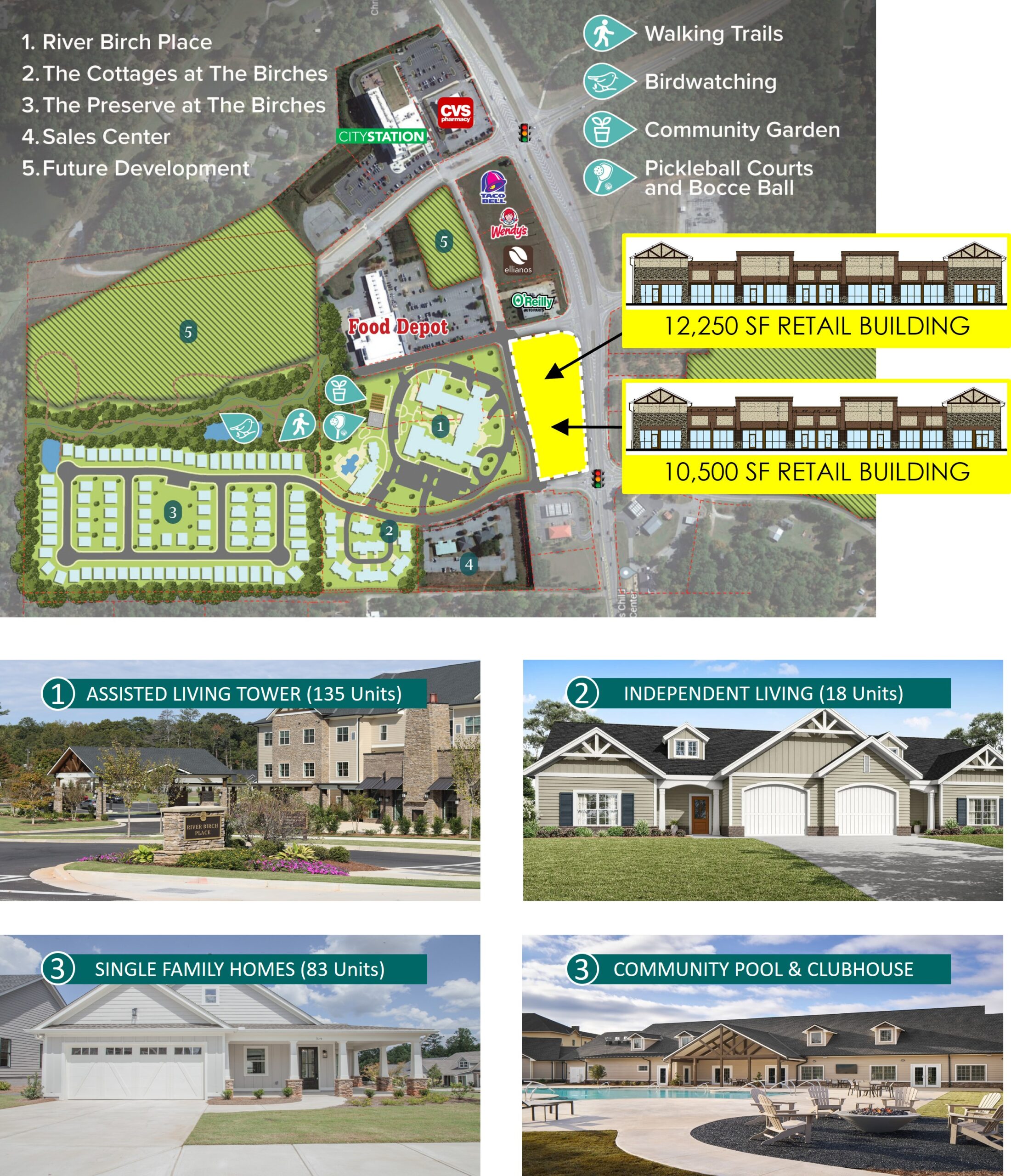 NEW DEVELOPMENT! Two Retail Buildings located at the busy intersection of GA Hwy166 and Maple Street in Carrollton, Georgia. Carrollton has quickly become one of Georgia’s top daytime commuter cities with the City having Daytime Populations of approximately 65,000 employees. Directly behind the property is The Birches on Maple, an Upscale 55+ Community consisting of 236 Residential Units. Adjacent to the project is CityStation – Carrollton’s newest community center with a first-class daycare center, Southern Hills Church (1,500+ attendees each Sunday), conference rooms, and 64 beds for University of West Georgia students. University of West Georgia (11,900 students) and West Georgia Tech College (9,000 students) are within 1 mile from the project.
